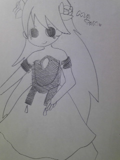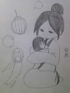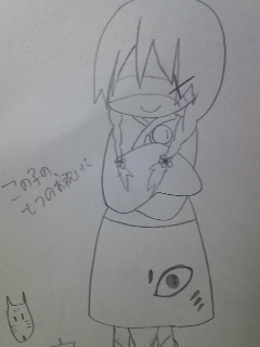 おかっぱにしようかなとか思ったけど敢えて現代的な感じで。目に包帯巻いてます。描いてて楽しい←